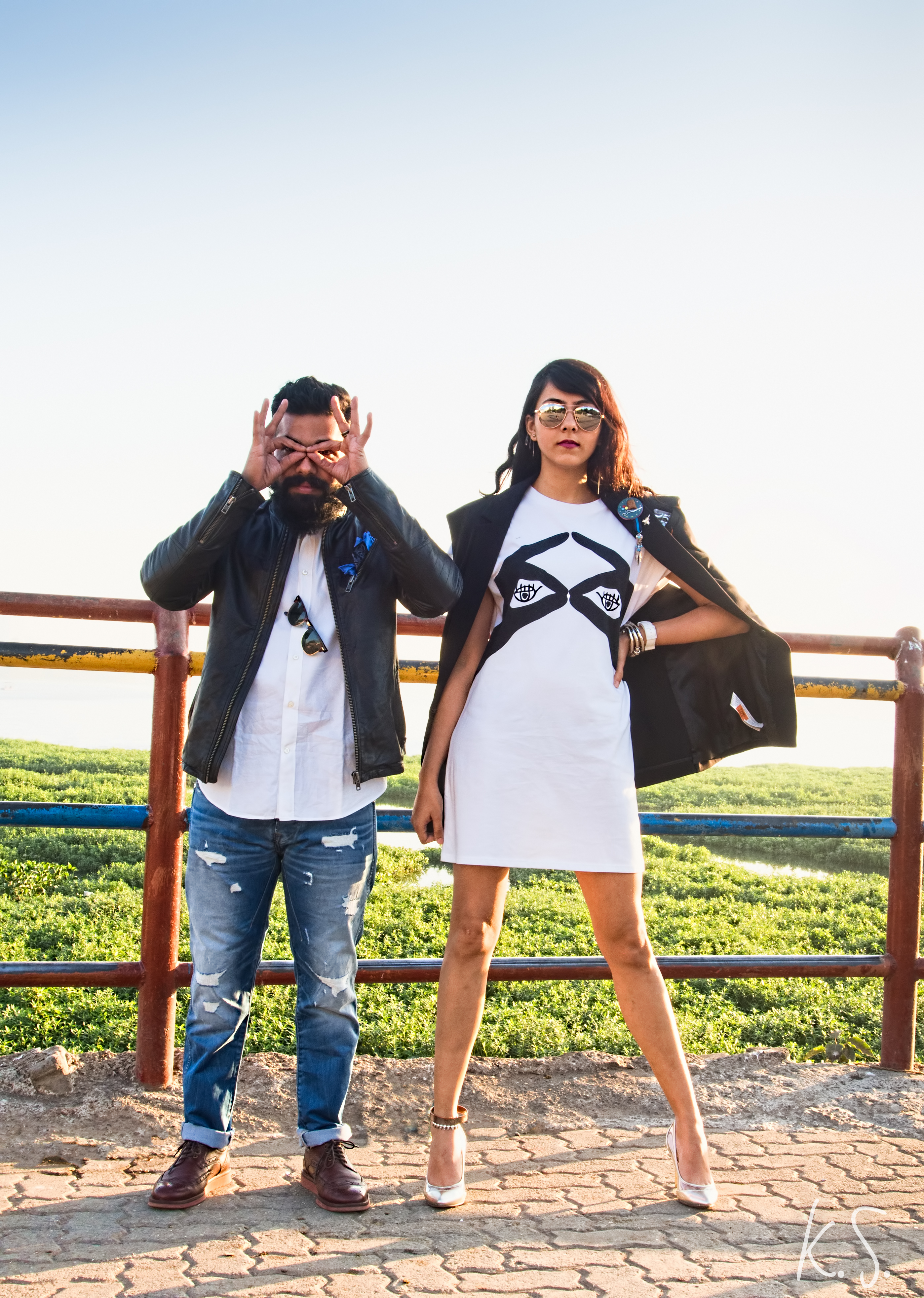 This week, we bring to you a collaborative effort between 2 fashion bloggers and a photographer. Namita Gautham of Take A Bow & Al Claudius of Bowties and Bones worked with Kapil Shingada at what should have been the crack of dawn. After a night with free shots, finger food and 2 hours of nap time no less. That should explain the sun glasses.